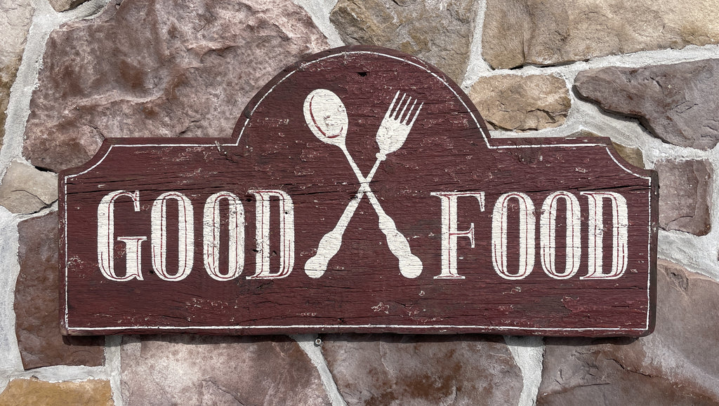 Home › Current Inventory › Good Food Good Food 15x30 Painted on antique board in old red paint, with white lettering. Default Title - $ 149.00 $ 149.00 Tweet Pin It