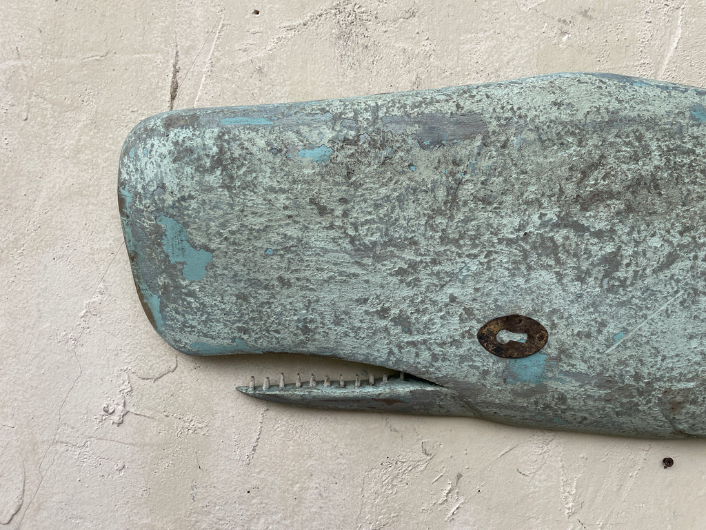 Home › Current Inventory › Large Carved Whale Large Carved Whale 13x46 Hand carved whale in pale blue over layers of greens and blues and grey paint, with an antique escutcheon eye. Default Title - $ 675.00 $ 675.00 Tweet Pin It