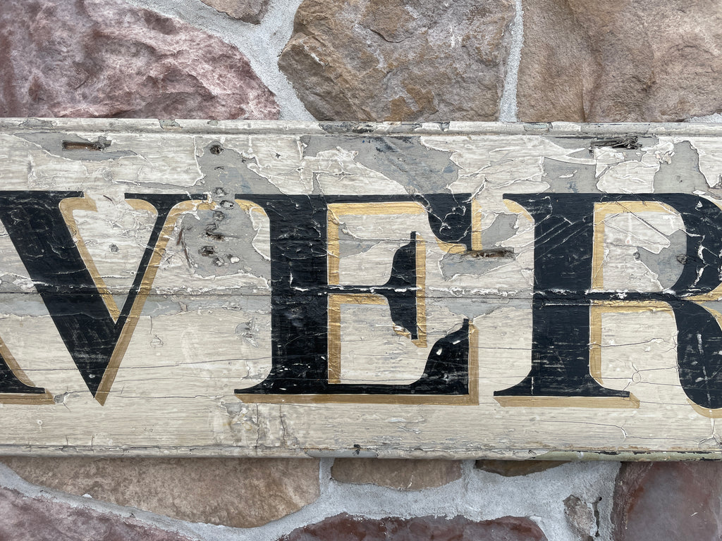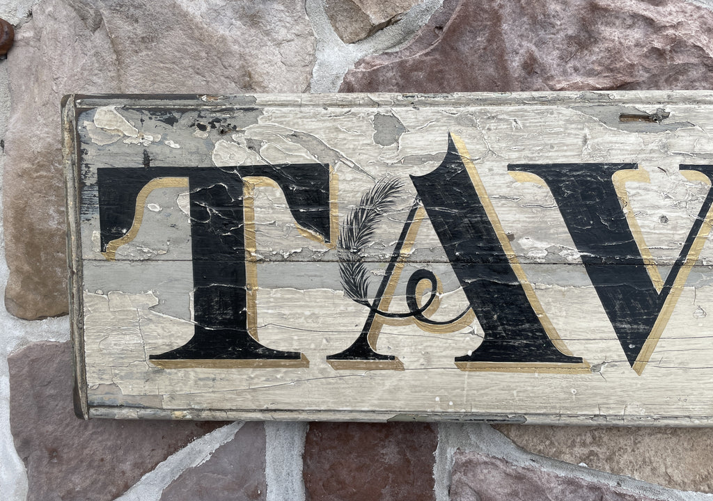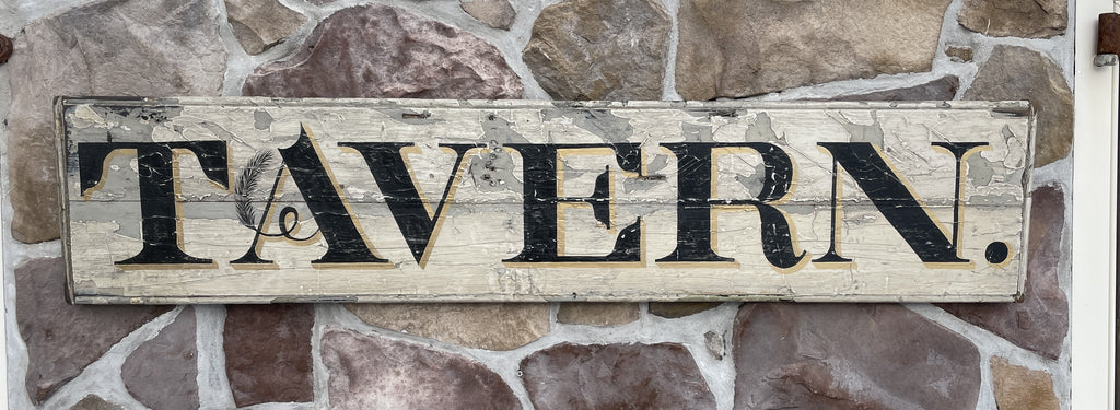 Home › Current Inventory › TAVERN TAVERN 12x51 Painted on an antique white board in aged paint, with with black letters , a beaded border and gold shadows. Default Title - $ 225.00 $ 225.00 Tweet Pin It
