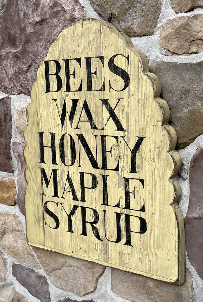 Home › Farm & Garden › Beeswax, Honey, etc. Beeswax, Honey, etc. 23Hx 19W Beehive-shaped sign made from old boards in original aged pale yellow paint, with black letters. Default Title - $ 199.00 $ 199.00 Tweet Pin It