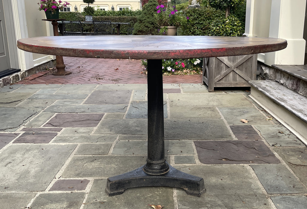 48" Round Compass Rose Table – Reclaimed Pine & Cast Iron