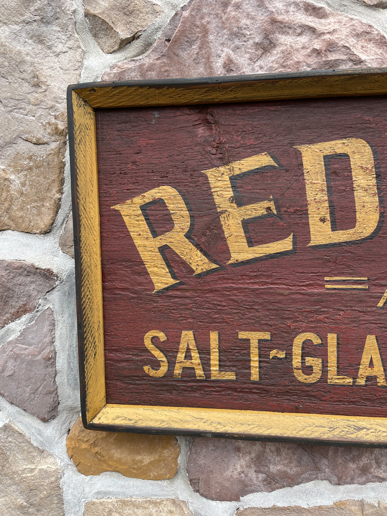 Home › Trade Signs › Redware and Salt-Glazed Pottery Redware and Salt-Glazed Pottery 17x33 Painted on antique boards in original aged red paint, with yellow and black lettering and beveled trim. Default Title - $ 269.00 $ 269.00 Tweet Pin It